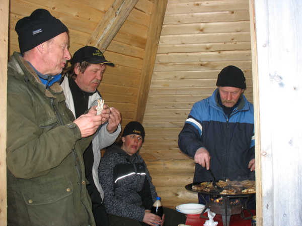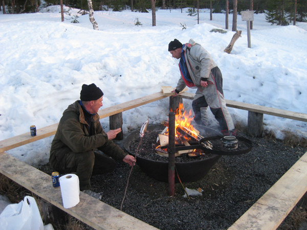 Kalixissa nautittiin nuotiolla paistetusta harjuksesta ja nokipannukahvista