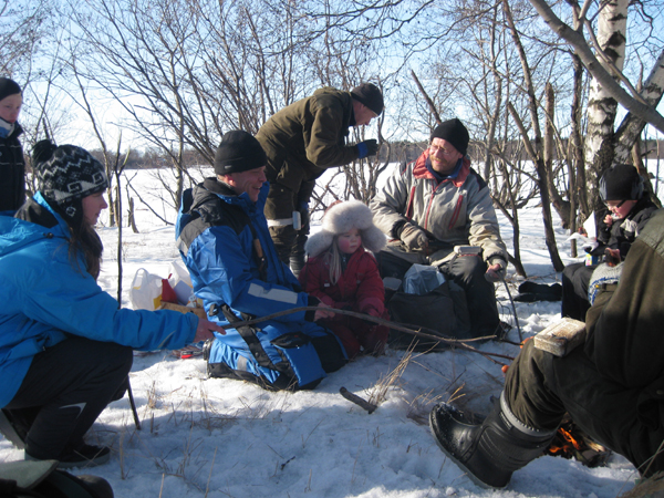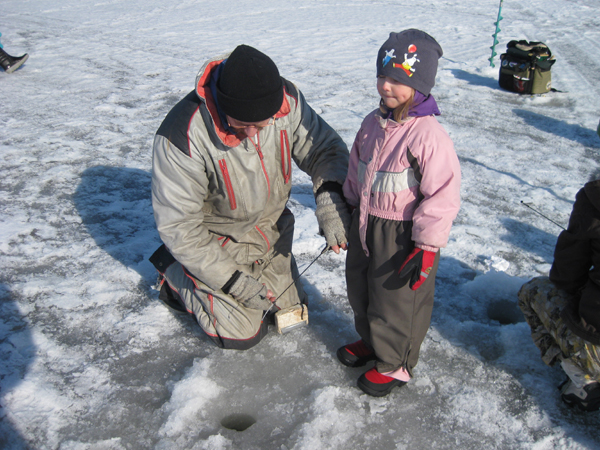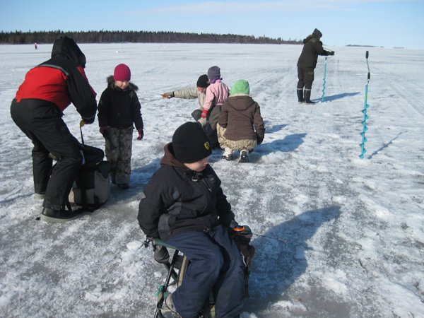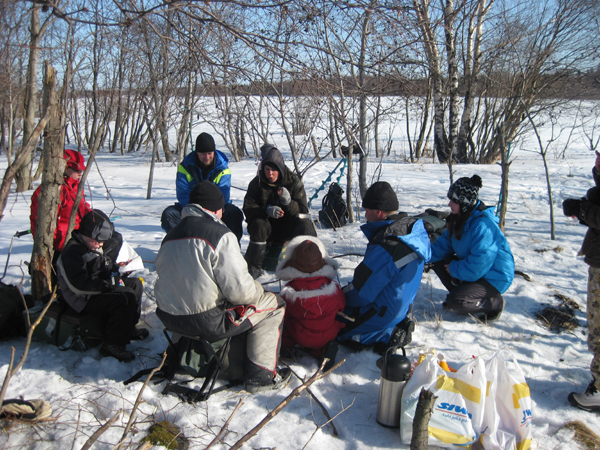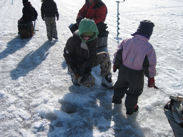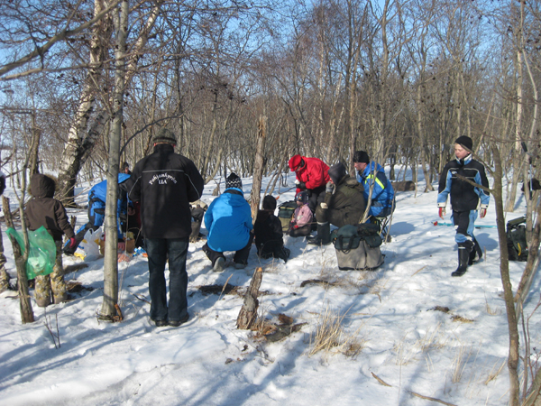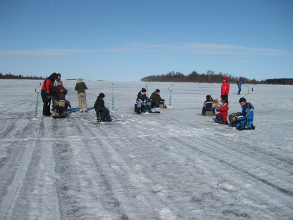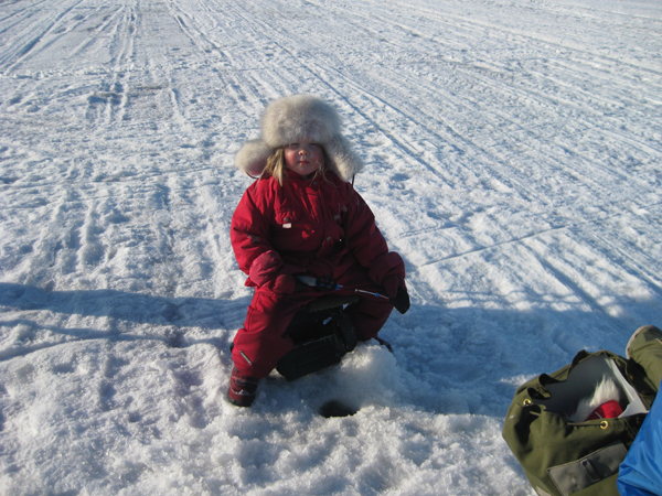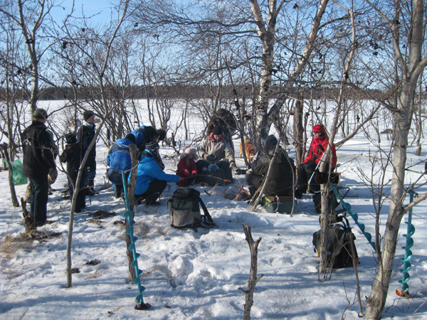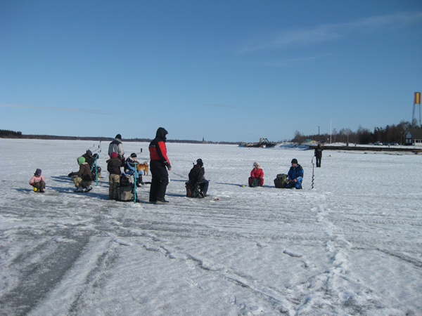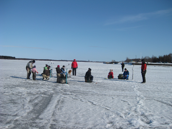 Innokkaita pilkkijöitä meren jäällä