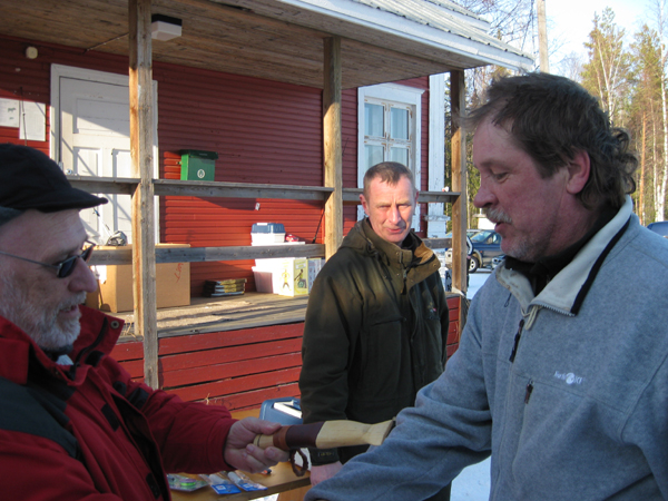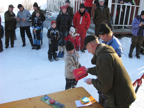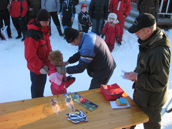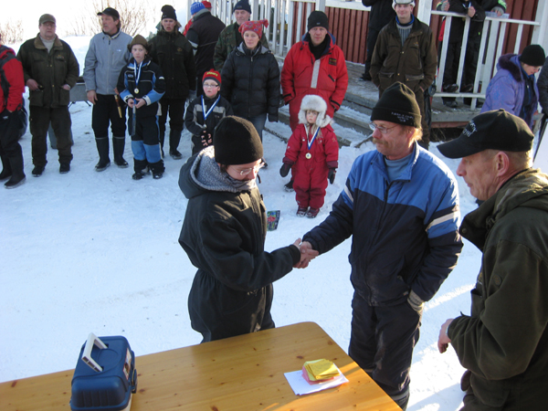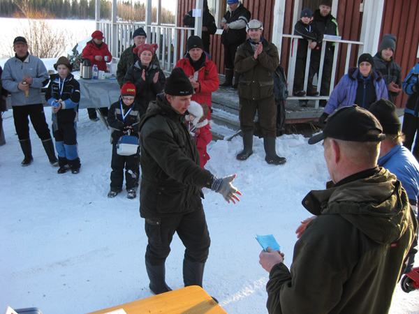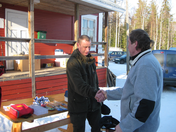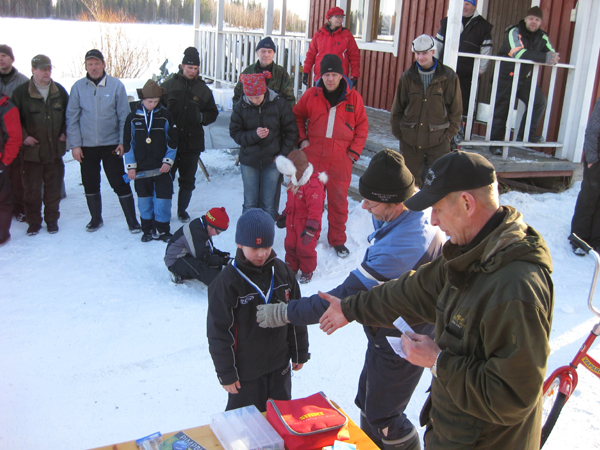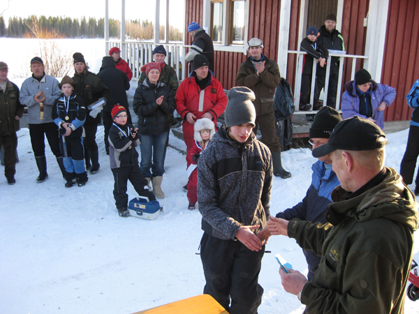 Ensimmäiseksi Reijo Härkman ja Sakari Lauronen palkitsivat Pohjois-Pohjanmaan Vapaa-ajan kalastajapiirin ja Raahen Merionkijoiden puolesta Ari Kerttulan jäihinputoajan hengen pelastamisesta Kalixissa viime keväänä